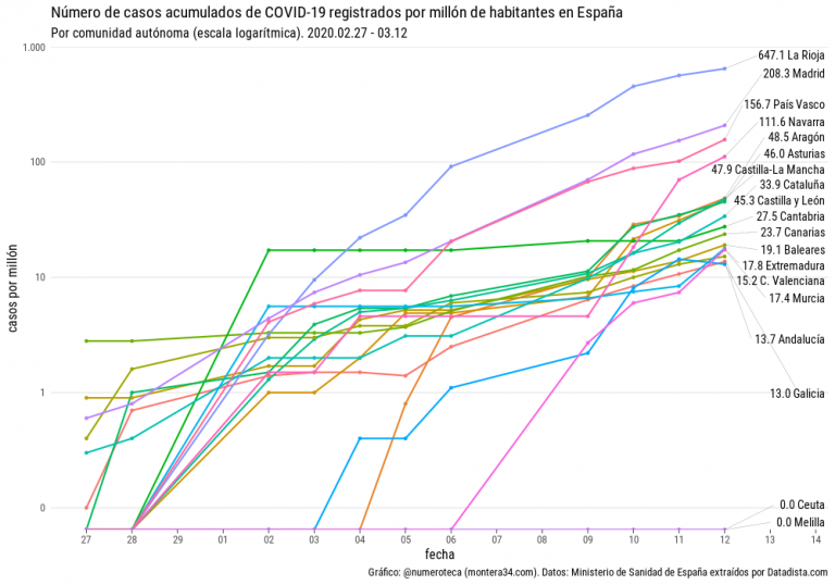 “El Gobierno español, a diferencia de los principales países afectados, no hace públicos los datos por franjas de edad de los 4.200 casos nacionales. Una portavoz del Ministerio de Sanidad invita a este periódico a solicitar la información a las 17 comunidades autónomas, una por una, ya que las competencias sanitarias están transferidas. La Consejería de Sanidad de la Comunidad de Madrid —la región más afectada, con casi 2.000 casos— tampoco facilita los datos desglosados por edad.”