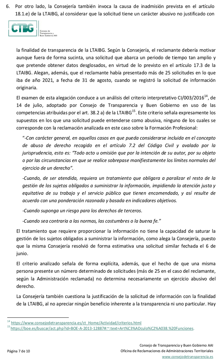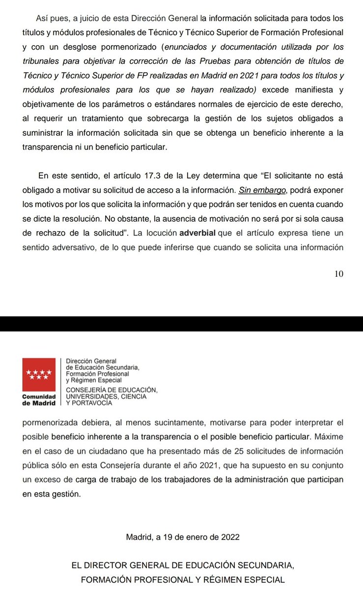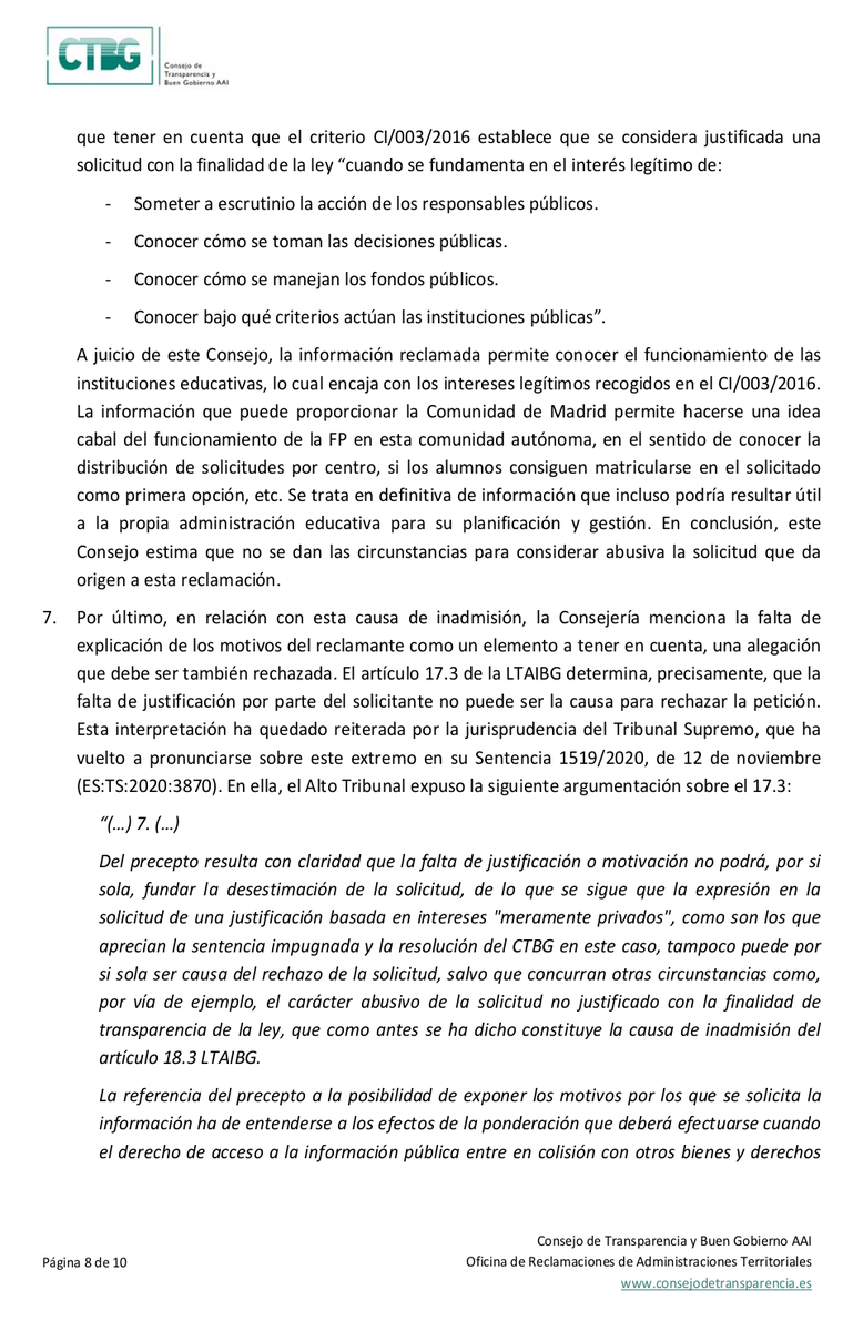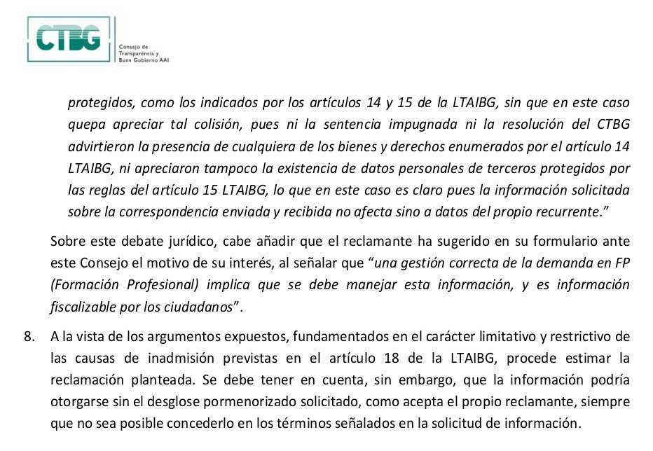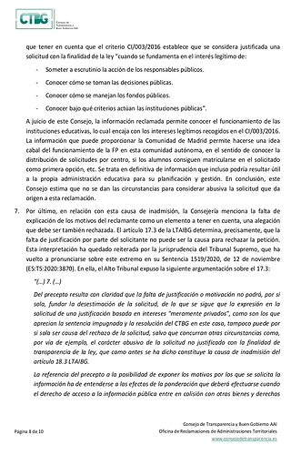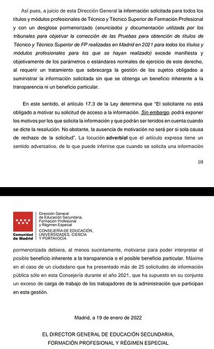 He recibido hoy alegaciones de Madrid a una solicitud de transparencia reclamada a CTyP